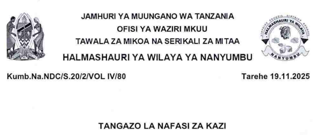 The Director of  NANYUMBU  Town Council invites qualified Tanzanians to apply for seven job position in this council after obtaining approval from the office of president, public sector management.