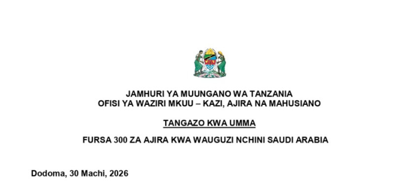 The Prime Minister’s Office – Labour, Employment and Relations in collaboration with the company “Dalba Consulting Group” would like to invite suitably qualified Tanzanians to apply for the 300 Nursing positions provided by the Ministry of Health in Saudi Arabia as stated in the table below:-